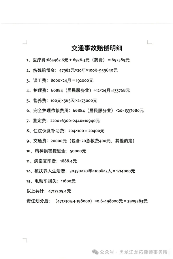 当事人遭遇交通事故一个多月后,专程找到黑龙江龙拓律师事务所主任王英福律师委托案件。王英福律师凭借**扎实的法律功底、丰富的交通事故办案经验与严谨负责的办案态度,全程细致梳理证据、精准把控案件关键点,全力为当事人争取合法权益。*终案件圆满胜诉,当事人成功获赔290余万元,切实守护了当事人的合法权益,彰显**法律服务的强大力量!