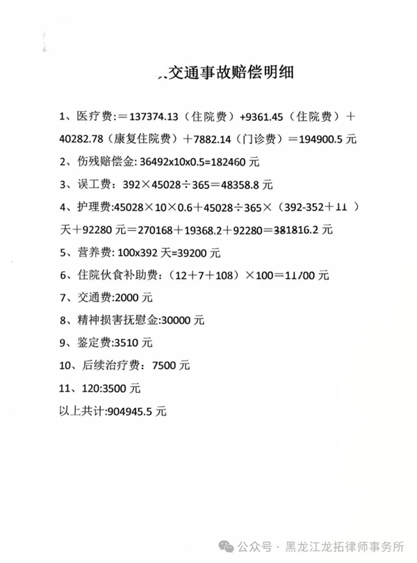交通事故中,当事人无责经诊断为颈部脊髓不**损伤,伤情严重,后续康复及生活均受到极大影响,当事人委托我所王英福主任律师介入维权后,律师通过细致梳理证据,精准计算各项损失,在法庭上有力辩护,*终为当事人争取到91万余元的赔偿,*大限度的维护了当事人的合法权益。