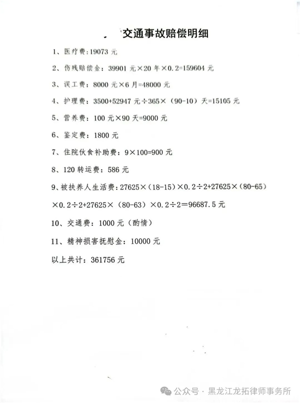 当拿到赔偿款的那一刻,我忍不住红了眼眶,这36万余元,不仅是对我身体伤痛的补偿,更是对我往后生活的保障,解决了我所有的后顾之忧。这场肋骨九级伤残的维权路,让我深深明白,遇到不公和伤害时,千万不要隐忍妥协,找对**的法律服务,才能真正为自己讨回公道。感谢黑龙江龙拓律师事务所,是他们的**与负责,让我在遭遇不幸后,感受到了法律的温暖与正义,也让我重新拾起了好好生活的勇气。